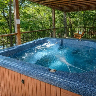 Relaxing hot tub on the lower deck, which overlooks the river (That's the perfect spot to relax by and scout out pigeons!)
